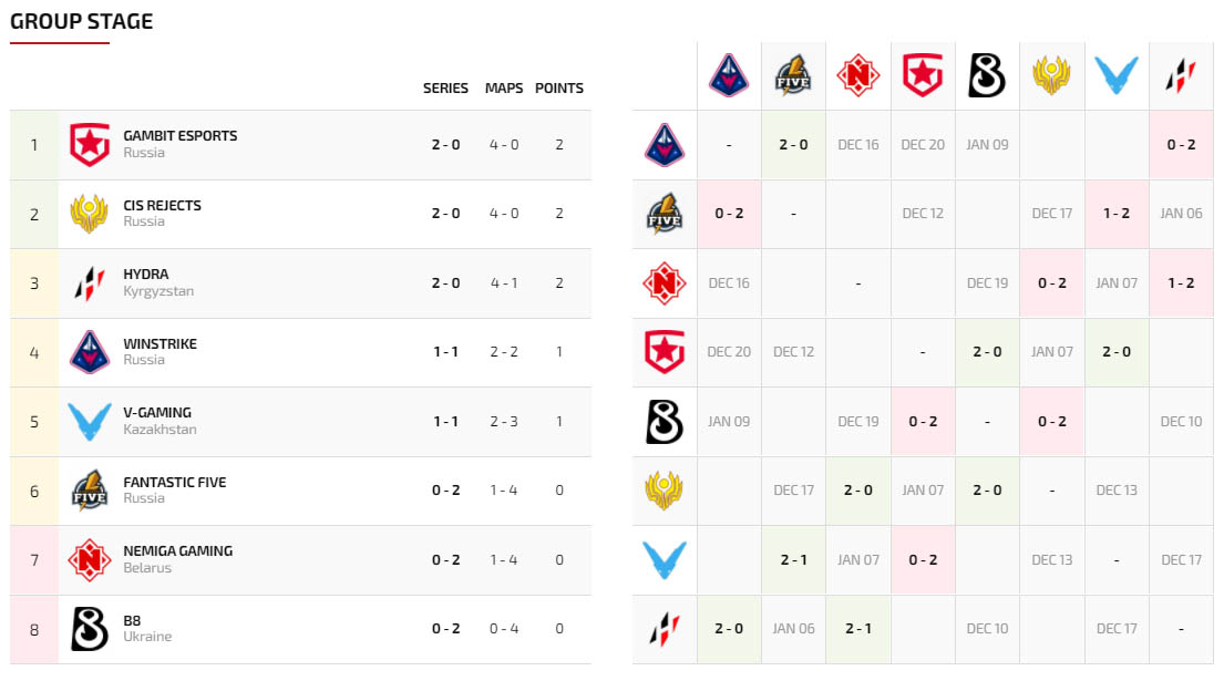 Right now, 9 other teams are competing in the group stage, after which the 4 strongest teams will qualify for the playoffs. Current standings: