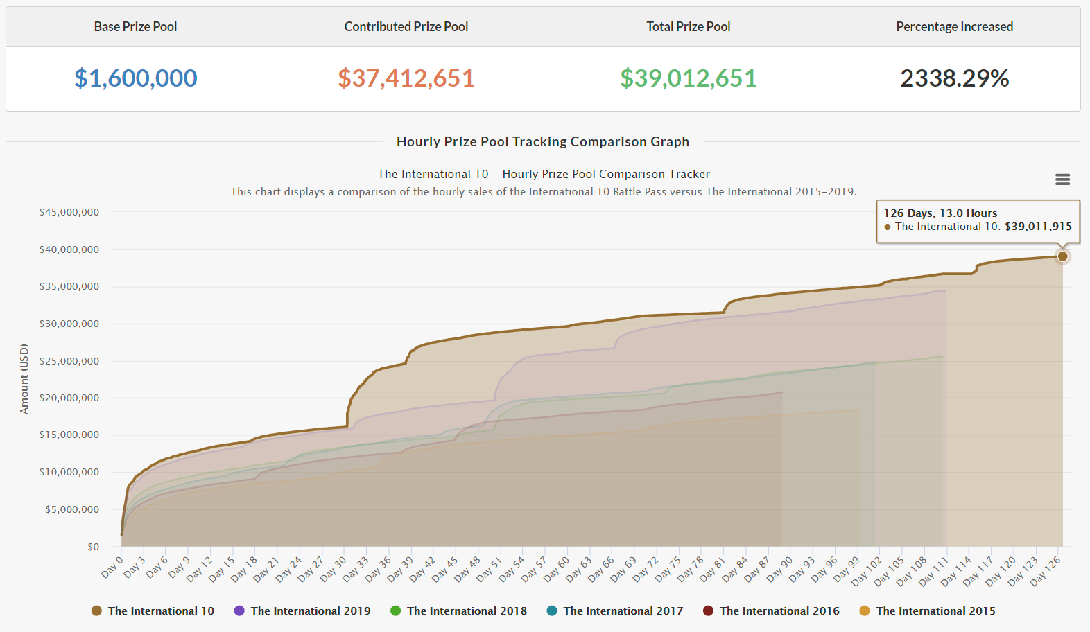 It took 126 days to reach that amount. The prize pool's main part comes from the Battle Pass sales in the Dota 2 in-game store. It was supposed to end on September 19, but Valve extended it until October 9.