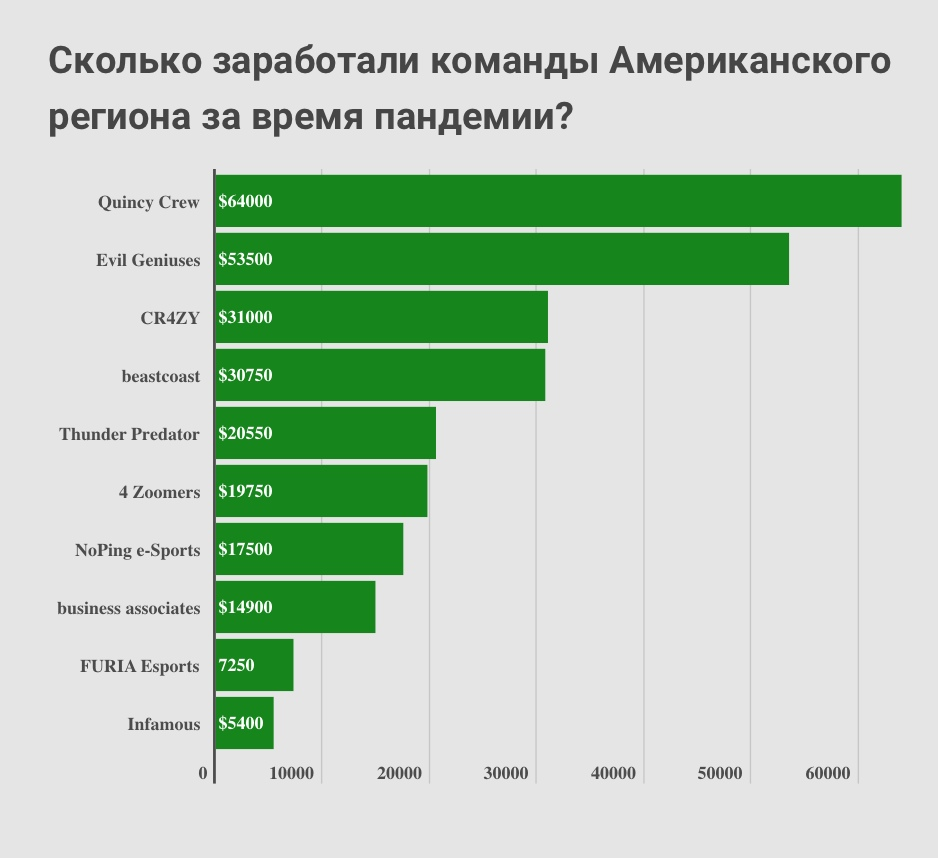 За время пандемии Американскому региону турнирные операторы выделяли на порядок меньше призовых, из-за чего список выглядит скромнее, чем в других регионах.